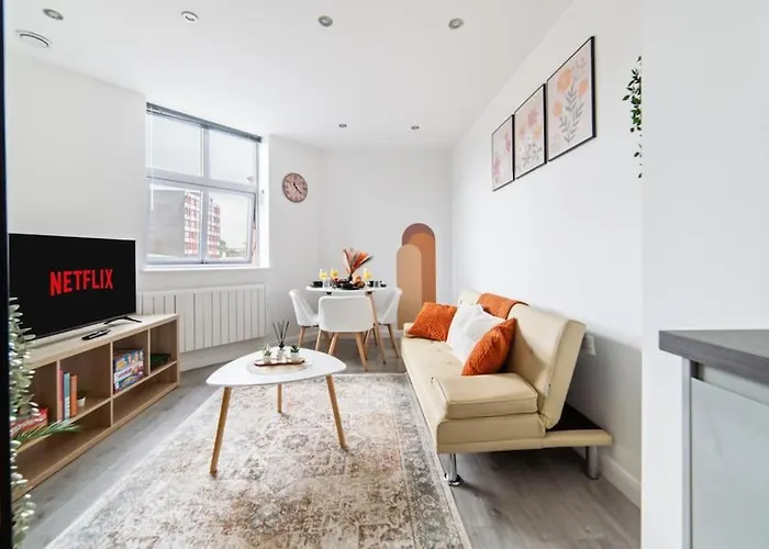 Apartmán Apartmán Bohemian Chic Hideaway nabízí kuchyni i pokoje s pohovkou, pracovním stolem, přístrojem na přípravu kávy a čaje. Toto ubytování je 25 minut chůze od Stadion Walkers Stadium a jen 500 metrů od Nákupní centrum Haymarket.